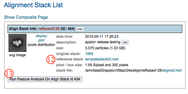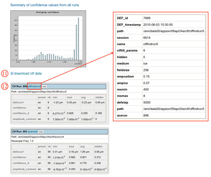 - Clicking on the "CtfFind#" name opens a summary page of the parameters used for the particular run.
