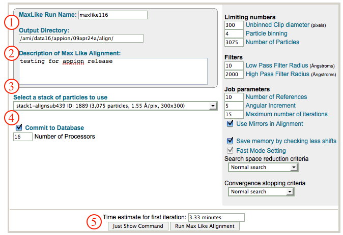 - Click on "Run Multi Reference Alignment" to submit your job to the cluster. Alternatively, click on "Just Show Command" to obtain a command that can be pasted into a UNIX shell.