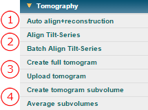 Warning: These processing are designed for Leginon acquired-tilt series only. Uploaded tilt series does not work