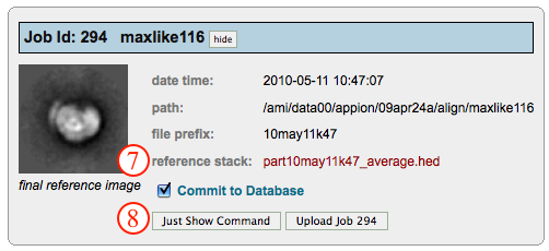 - To submit the job to the cluster click the "Align Tilt Series" button. Alternatively, click on "Just Show Command" to obtain a command that can be pasted into a UNIX shell.