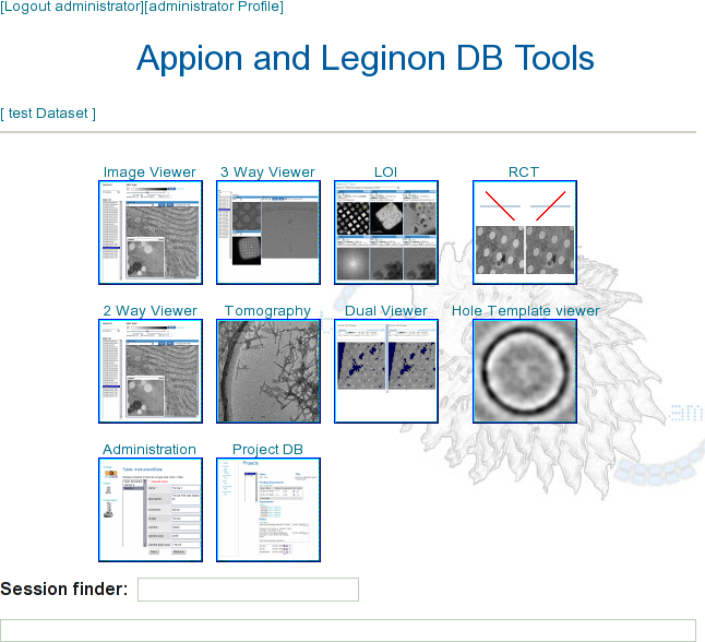 From the image viewer, click on the [processing] button at the top of the screen. This will open the Appion processing pipeline application. From there, follow the directions in Process Images to confirm that your installation is functioning properly.