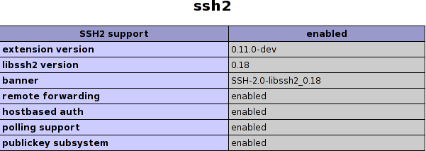 - search for the ssh2 module, you should see this section:
