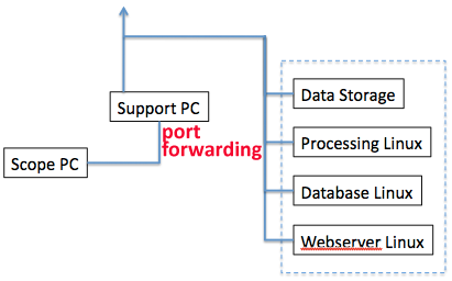 or do port-forwarding on the support PC. This configuration requires that support PC opens up a few ports towards outside which a lot of building firewall will not allow. After trying this configuration recently at one site, we feel this adds more security risk than benefit. If your local scope service engineer insists on it, you should consider installing a third network card on the support PC to do this and leave the internet network alone.