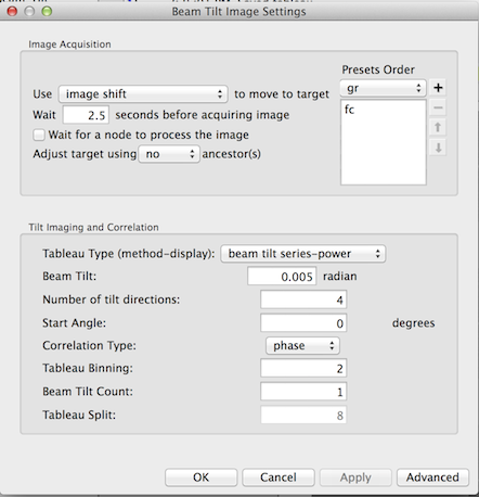 - The average beam tilt (theta) realtive to the optical axis achieved by rotation center alignment can be further refined by the so-called coma-free alignment. There are tools in Leginon that can help you do so as found in the application "MSI-T Advanced". You can also add the node in any MSI application following Use the Application Editor to create Leginon applications